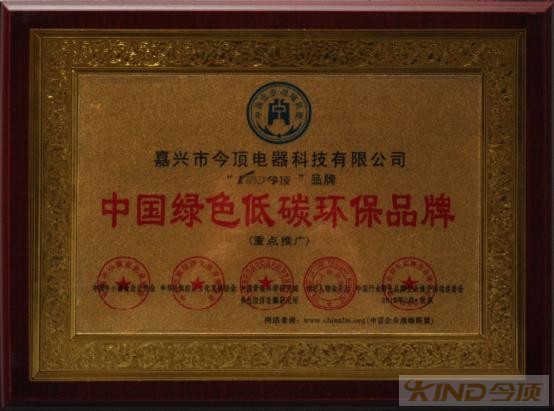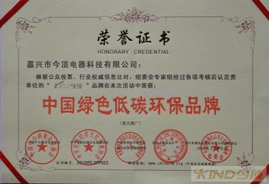 中國綠色低碳環(huán)保品牌證書