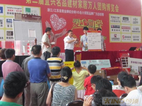 8月12日,由宜興今頂牽頭組織當(dāng)?shù)財(cái)?shù)十家建材知名品牌共同承辦的“愛心助學(xué),第二屆宜興名品建材家居團(tuán)購(gòu)博覽會(huì)”為主題的大型活動(dòng),在當(dāng)?shù)厝肆Y源市場(chǎng)內(nèi)如期開幕。本次愛心,愛家聯(lián)盟在行動(dòng)活動(dòng),還特邀浙江首席金牌砍價(jià)師蒞臨現(xiàn)場(chǎng)與各大廠家代表進(jìn)行互動(dòng)砍價(jià),活動(dòng)當(dāng)日,宜興今頂為了讓當(dāng)?shù)氐呢毨W(xué)子擁有更多的愛心助學(xué)金,特推出數(shù)款精美絕倫的經(jīng)典套餐組合越低折扣以及一系列超值單品以前所未有的震撼價(jià)瘋狂讓利給廣大消費(fèi)者。