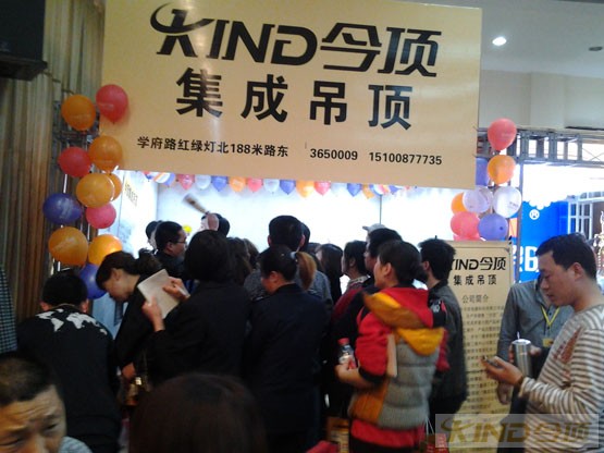 今頂復(fù)古吊頂在2013的五一,上演了全國火爆銷售的場面。在2013年4月30日,及5月1日各地今頂以各種不同形式開展終端銷售。河北河間,今頂復(fù)古吊頂火爆場面掠影。