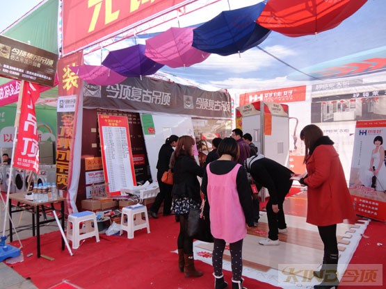 今頂復(fù)古吊頂在2013的五一,上演了全國火爆銷售的場面。在2013年4月30日,及5月1日各地今頂以各種不同形式開展終端銷售。河南濟(jì)源,今頂復(fù)古吊頂火爆場面掠影。