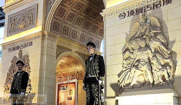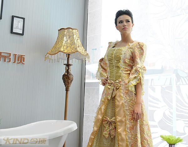 在廣博會現(xiàn)場,8位名模身著復古服飾盛裝出席。他們或在樣板間依產(chǎn)品而靠,或在凱旋門前威武而立,并不時集體進行產(chǎn)品展示秀,他們與今頂復古集成吊頂?shù)恼桂^、產(chǎn)品融為一體,亦動亦靜的詮釋著今頂復古集成吊頂?shù)膹凸棚L尚。驚艷的氣質(zhì)、華麗的裝束、優(yōu)雅的動作,吸引了大批參觀人士駐足觀看。為今頂復古集成吊頂本次展會的成功舉行起到了一定的推動作用!