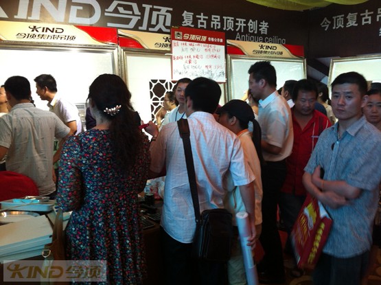 在家博會(huì)現(xiàn)場(chǎng),今頂復(fù)古吊頂先后出了歐式復(fù)古、中式復(fù)古個(gè)3~4塊樣品供消費(fèi)者選擇,同時(shí)根據(jù)消費(fèi)者的需求為消費(fèi)者推薦電器的組合。值得一提的是很多業(yè)主對(duì)今頂“點(diǎn)睛系列”中再創(chuàng)輝煌表現(xiàn)了極大的興趣,鏡面板材配以白色雕刻,使之看上去盡顯了歐洲的復(fù)古風(fēng)風(fēng)。在不斷的有人咨詢中今頂?shù)母骺町a(chǎn)品都被到場(chǎng)業(yè)主贊不絕口。