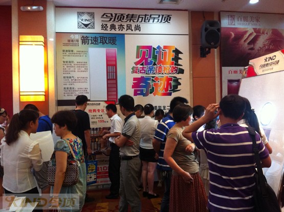 廣東中山,中山今頂參加了當(dāng)?shù)丶揖悠放茍F(tuán)購會(huì),作為行業(yè)內(nèi)較附盛名的今頂復(fù)古集成吊頂在每次亮相都給廣大業(yè)主眼前一亮的感覺,這次在中山也一樣,只是中山今頂選擇了一種優(yōu)雅婉約的方式,這使得當(dāng)天的中山業(yè)主立即感受到了今頂品牌那與眾不同超凡氣質(zhì),這一氣質(zhì)吸引了大量的中山業(yè)主。