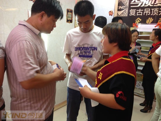 作為集成吊頂十大品牌,今頂復(fù)古集成吊頂在2013年中秋佳節(jié)掀起了一股強(qiáng)烈的復(fù)古吊頂風(fēng)。在河北唐海,一場(chǎng)見(jiàn)證今頂復(fù)古集成吊頂銷售大勝的活動(dòng)已經(jīng)圓滿落幕!這次大勝帷幕的拉開(kāi)則是從今頂團(tuán)隊(duì)威武的口號(hào)、詳盡的現(xiàn)場(chǎng)布置開(kāi)始的。在這次活動(dòng)中今頂不僅收獲了訂單的大獲全勝,更是在業(yè)主面前展現(xiàn)了自己集成吊頂十大品牌的風(fēng)范。