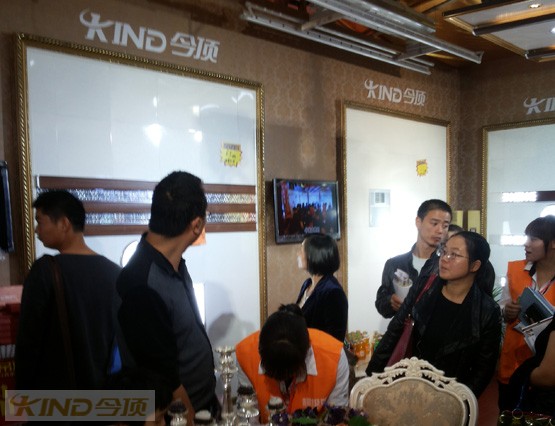 現(xiàn)場業(yè)主參觀今頂展位所展示今頂復(fù)古吊頂產(chǎn)品