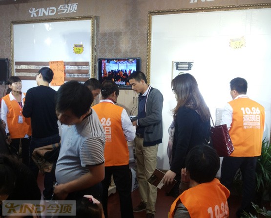 今頂團(tuán)隊工作人員與現(xiàn)場業(yè)主交流集成吊頂知識