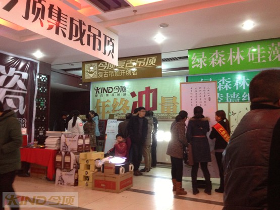 2013年,淮南最大讓利建材家居活動“大牌建材聯(lián)盟,全城直降50%2013建材家居終極盛典”在淮南舉行。為了使淮南業(yè)主獲得最大幅度優(yōu)惠,主辦方力邀今頂復(fù)古吊頂、客來福衣柜、德意·麗博櫥柜、揚子木門、惠爾地板、金牌天緯陶瓷、印象燈飾等眾多淮南當?shù)刂放魄皝韰⑴c。