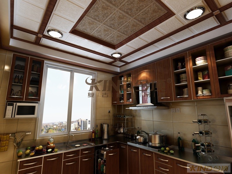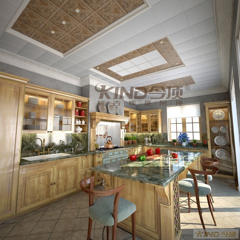 大部分家庭廚房頂部都是單調(diào)的冷色系,但如果把今頂復(fù)古吊頂裝上,利用今頂復(fù)古吊頂打造廚房的品味,可以讓你的廚房更加精美別致。