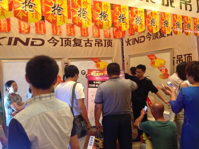 呼和浩特今頂,在好家居現(xiàn)場展現(xiàn)復古吊頂?shù)谝黄放频镊攘τ璧綀鰳I(yè)主;