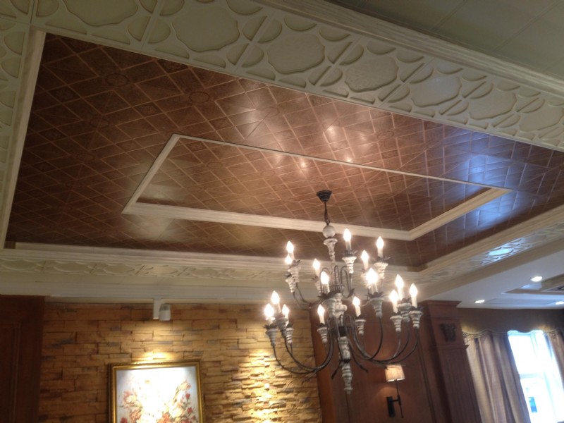 今頂復古集成吊頂:扣板使用純鋁的最高等級6系鋁材,鋁的純度達到99.5%以上,氧化后不會有黑,不會變形,不會變色,防火性能不言而喻。