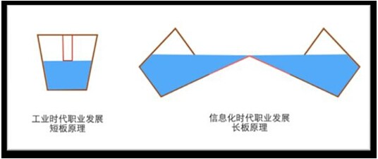 以前有一個著名的木桶理論--一個木桶能裝多少水,取決于最短的一塊板。在工業(yè)化時代,這個理論的確非常有效。但是在互聯(lián)網(wǎng)時代,你沒有必要精通一切,只需要有一塊足夠長的長板,以及一個有"完整的桶"的意識,就可以通過合作的方式補齊自己的短板。