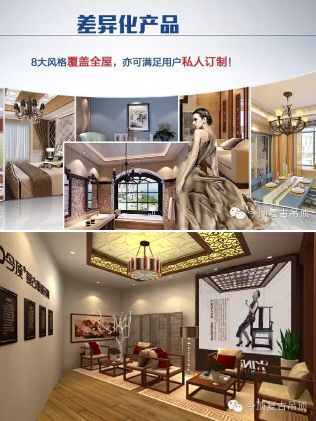 以“創(chuàng)新兇猛”著稱的今頂復(fù)古吊頂,先后推出了顛覆性的“水墨江南”、“點(diǎn)睛”系列等差異化復(fù)古產(chǎn)品,并創(chuàng)新性的研發(fā)出“九重彩”、“黃金管加熱”、“勁旋科技”、“速熱360”、“一體式PTC”、“六級旋風(fēng)”等核心技術(shù),引領(lǐng)行業(yè)一次又一次的技術(shù)革命。每年近百款的新品陣容,使產(chǎn)品線完整覆蓋全屋8大風(fēng)格,9大空間,并且可針對用戶需求進(jìn)行私人定制的產(chǎn)品服務(wù)。