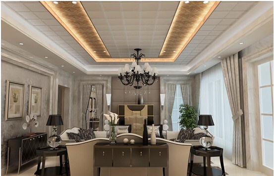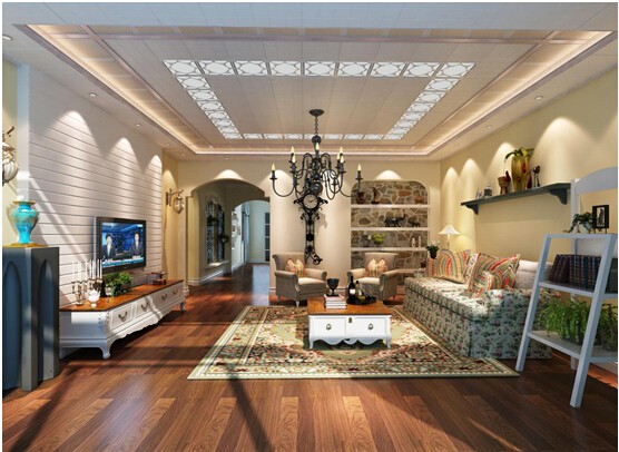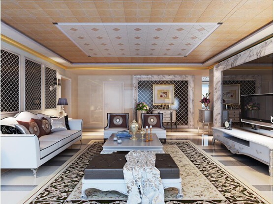 在客廳了采用一塊大面積的花紋地磚來顯示歐式風格的大氣,錯落有致的吊頂設計,優(yōu)雅舒適的歐式沙發(fā)讓客廳的氣氛變得十足的高雅。