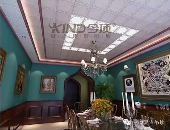 在全屋吊頂已然成為趨勢的今天,客廳、餐廳、臥室等大面積空間的氛圍營造,只有復(fù)古吊頂才能與之相配支撐起全屋空間的裝修風(fēng)格需求。順應(yīng)這樣的趨勢,今頂2015年推出528規(guī)格“奢華大宅”系列產(chǎn)品,以超大的規(guī)格,演繹大空間的氣派視野,特別適合在大面積的空間展示,營造氣派、豪華的裝修效果,盡顯落落大方的風(fēng)范氣度。