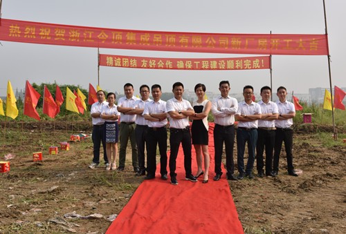 今頂集成吊頂有限公司總經(jīng)理周建成,副總經(jīng)理錢(qián)宏亮、華偉,及公司高層共同出席開(kāi)工儀式。