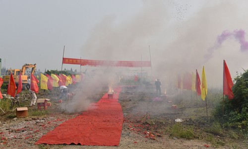 隨后,在一片祥和喜慶的氣氛下,大家同擎金鍬,揚(yáng)土培基,奠基儀式正式開(kāi)啟!