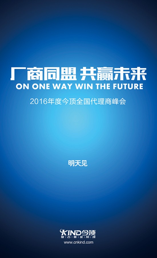 今頂集成吊頂以“廠商同盟,共贏未來”為主題的2016年代理商峰會(huì),將于明天在嘉興富悅大酒店正式召開!屆時(shí),全國的今頂集成吊頂代理商將聚焦嘉興,共享今頂集成吊頂財(cái)富盛宴!感謝代理商長期以來對(duì)今頂?shù)男湃?,今頂集成吊頂自?chuàng)辦至今才能茁壯成長!我們,明天見!