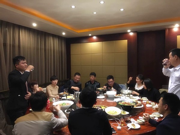 4月6日晚,會(huì)員們從各地風(fēng)塵仆仆而來(lái),作為東道主的商會(huì)會(huì)長(zhǎng)聶總早已準(zhǔn)備好了晚餐,溫馨的場(chǎng)景中露出成員們自信的笑臉。今頂強(qiáng)大的品牌化思路不僅滲透在各大廣告畫(huà)面中,晚餐中大家愉快的品嘗著是帶有今頂品牌的“茅臺(tái)酒”。