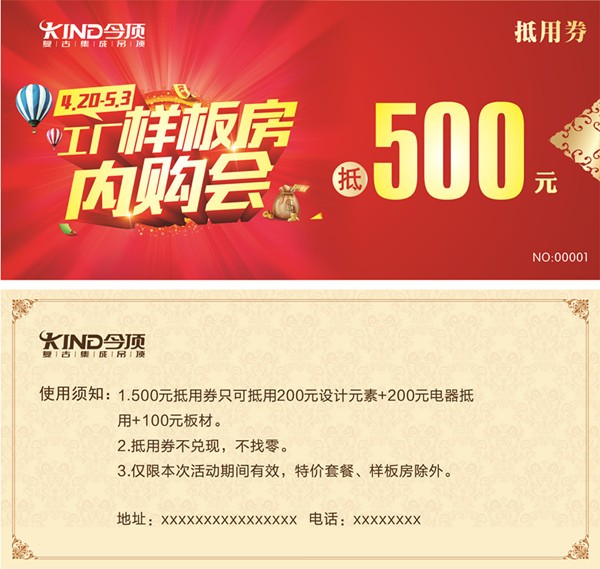 “今頂?shù)蹴斆绹}噠,預(yù)約工廠內(nèi)購樣板房成功啦“,下單即送500元抵用券(200元設(shè)計(jì)元素抵用券+200元電器抵用券+100元板材抵用券。抵用券不兌現(xiàn),不找零,僅限本次活動期間有效,特價(jià)套餐、單品等除外