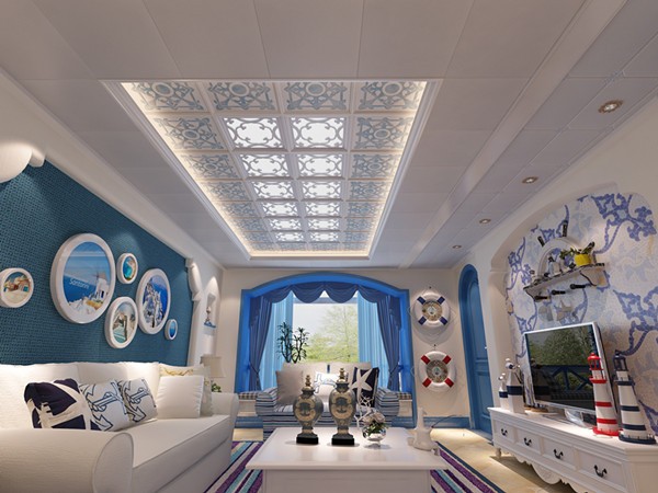 整體方案凸顯地中海蔚藍色的浪漫情懷,奢華大宅扣板、名門大宅LED、砂白色一體錯層,每個元素恰到好處。雕花造型的LED表達出主人的生活情趣,讓功能與美學融為一體,表現(xiàn)出地中海風情的純美與優(yōu)雅。