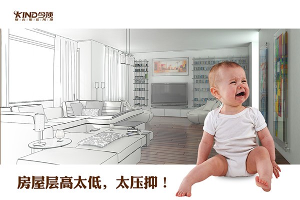 總層高2.7m-龍骨高度10~15cm-二級(jí)頂下沉15cm-地板5~10cm,安裝后層高=2.3m(十分壓抑),這還不算上鋪設(shè)地暖的高度,如果鋪設(shè)地暖,空間會(huì)更加壓抑!