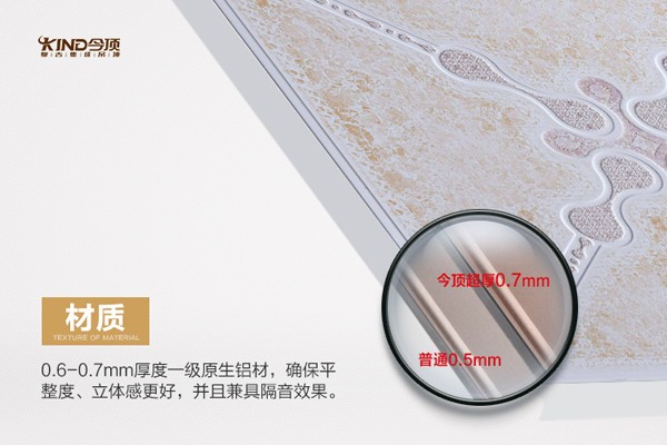 今頂集成吊頂堅(jiān)定不移的決定在尊雅系列等新品板材上提高板材厚度,增厚至0.7mm,將板材的平整度、立體感增強(qiáng),隔音效果的改善,極具色彩表現(xiàn)力,讓集成吊頂?shù)母黜?xiàng)優(yōu)勢(shì)都完美體現(xiàn)。而且,板材品質(zhì)的提升,與瓷磚、衛(wèi)浴、廚柜等形成統(tǒng)一的風(fēng)格,檔次高、質(zhì)感好,為消費(fèi)者帶來更加品質(zhì)化的消費(fèi)體驗(yàn)。