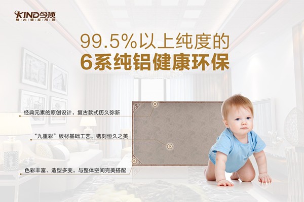 在選購(gòu)集成吊頂?shù)臅r(shí)候應(yīng)當(dāng)格外注重環(huán)保性能,今頂集成吊頂其使用最高等級(jí)的6系原生鋁材,純度達(dá)到99.5%以上,氧化后不會(huì)發(fā)黑,而且不含任何對(duì)人體有毒的汞、鉻、鎳、鉛等重金屬,達(dá)到食品材料級(jí),健康、環(huán)保。選購(gòu)健康環(huán)保的今頂集成吊頂,讓家的天空變的更美的同時(shí),保證家和家人的健康。