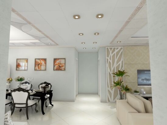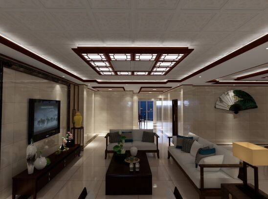 淺色暗花配合紅木色方格燈,濃濃的古典氣息,江南韻味。
