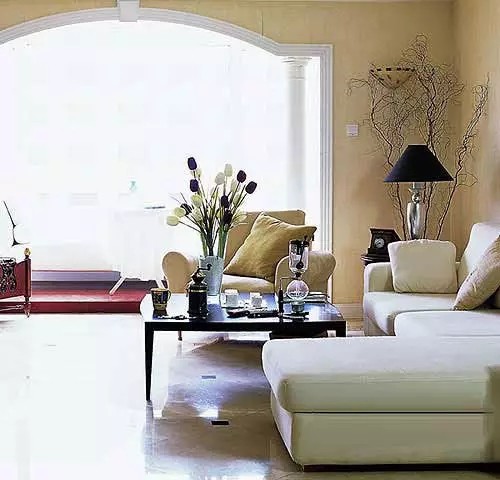 大拱門在客廳與落地窗之間巧妙的運用,帶有修飾又不遮擋陽光。