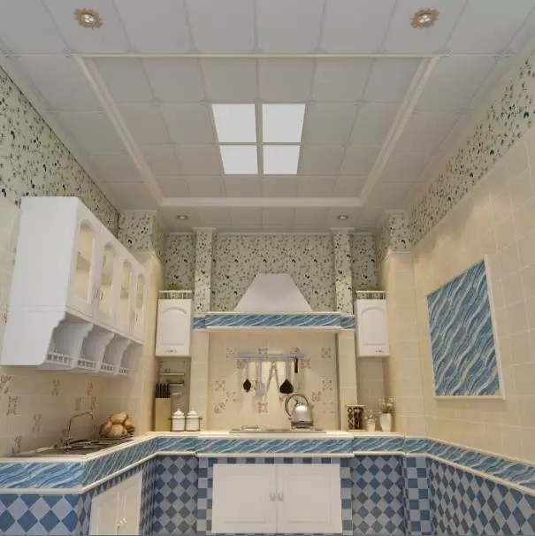 墻上瓷磚利用拼接的形式,色彩豐富飽和,還有馬蹄形柜門的壁柜,都帶有浪漫的地中海風情。