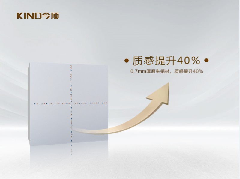 從0.5mm的行業(yè)基本用材,到堅持使用0.7mm高品質(zhì)厚度鋁材,厚度增加的一小步,卻是吊頂高端化進程中提升的一大步。板材增厚,平整度、立體感的增強,隔音效果的改善,讓簡約的自然風情與源于生活的優(yōu)雅藝術(shù)變得更為厚實,更有質(zhì)感。