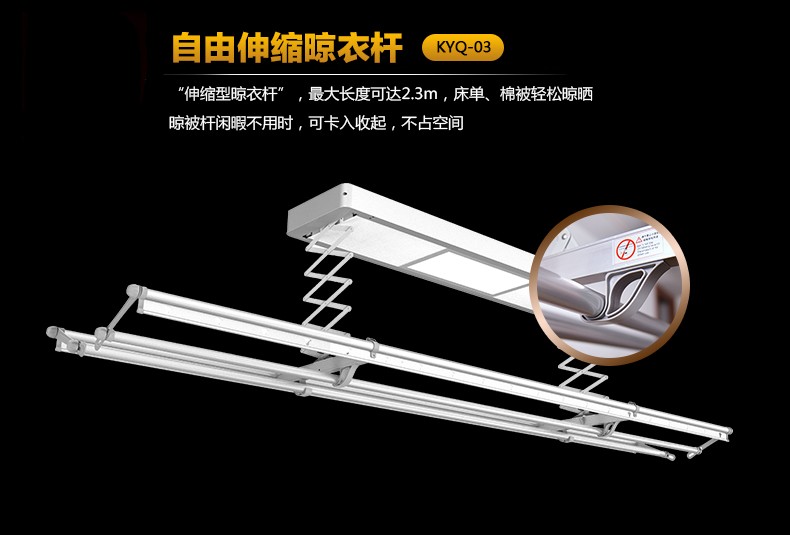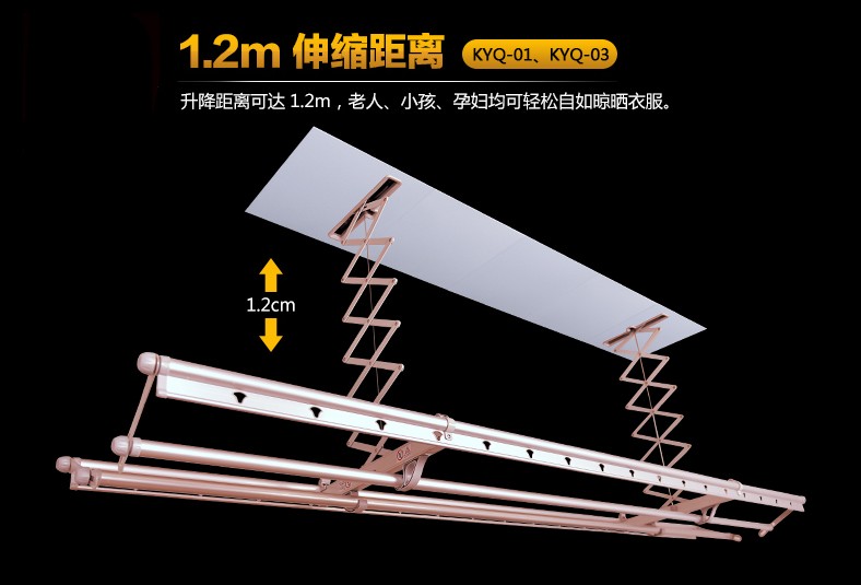 【1.2m伸縮距離】:升降距離可達(dá)1.2m,老人、小孩、孕婦均可輕松自如晾曬衣服。
