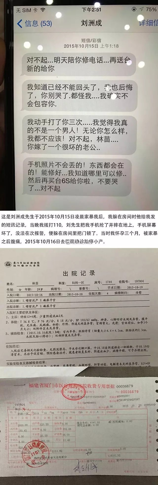 言歸正傳,網(wǎng)上說,一直覺得劉洲成不像個男人,打起來老婆來還挺“男人”,還在孕期動手,甚至導致妻子流產(chǎn),小小的生命就消失在自己的魔抓下,那一刻不知道劉先生是否會心痛。