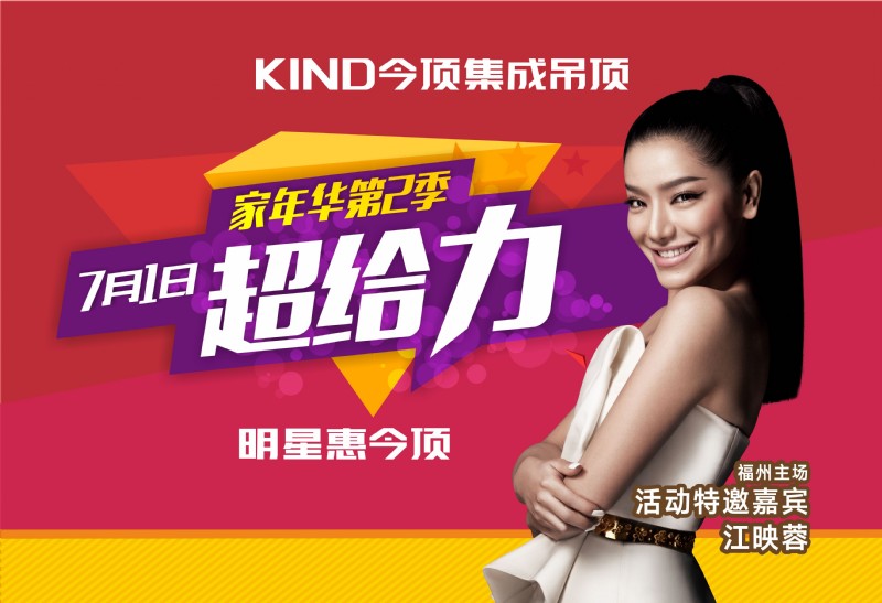 此次第二季“超給力·家年華”全國(guó)大促,今頂將有超過(guò)1000家專賣店參與其中,在全國(guó)超過(guò)30個(gè)省市展開空前的優(yōu)惠力度。不僅如此,作為主場(chǎng)的福州,還特別邀請(qǐng)到了內(nèi)地新生代唱跳歌手江映蓉傾情助陣,并借此向所有消費(fèi)者保證:今頂集成吊頂會(huì)始終堅(jiān)持“以不同,創(chuàng)造不凡”的品牌理念,不斷進(jìn)行產(chǎn)品的優(yōu)化與創(chuàng)新,為全國(guó)消費(fèi)者提供最優(yōu)質(zhì)的吊頂產(chǎn)品與服務(wù)!
