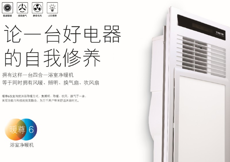 獨(dú)立換氣渦輪+弧形蝶翼主進(jìn)氣口+4重輔助進(jìn)氣口的設(shè)計,大大提升了暖尊6的換氣效果,使得浴室不再悶熱的同時,還能清除馬桶等異味,令浴室清新舒適!