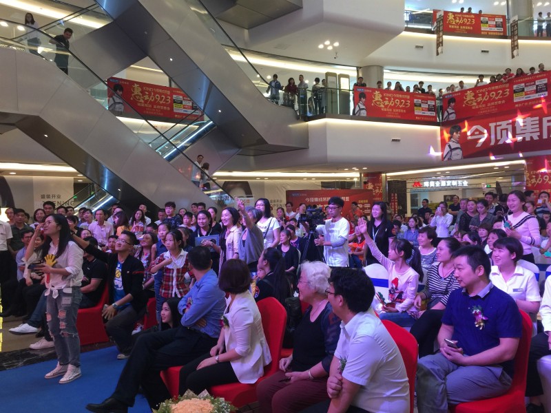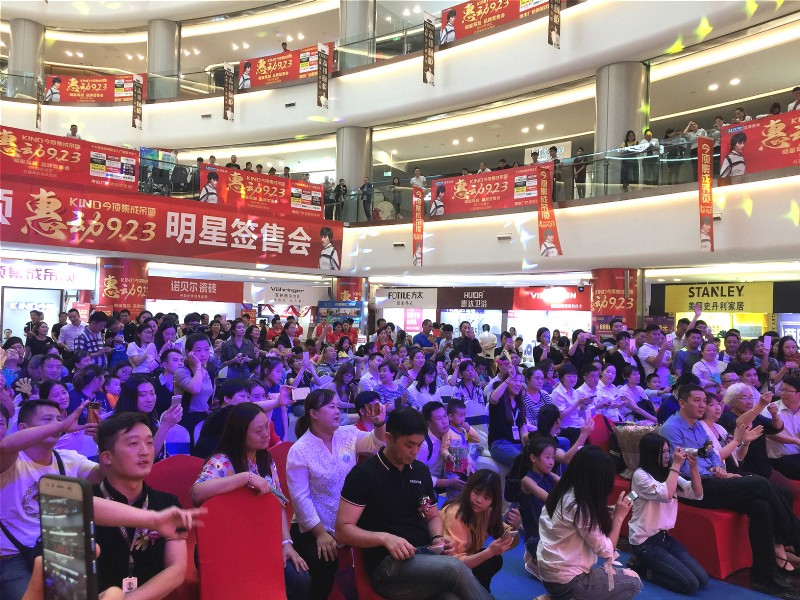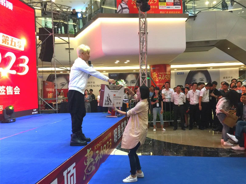 參觀過后,活動正式開始。而在這之前,舞臺區(qū)早早便聚集起了人山人海的顧客和粉絲,爆棚的熱情數(shù)度令現(xiàn)場險些失控,好在在安保人員的專業(yè)組織下,活動最終順利展開,粉絲們也終于得見偶像陳志朋的身影!