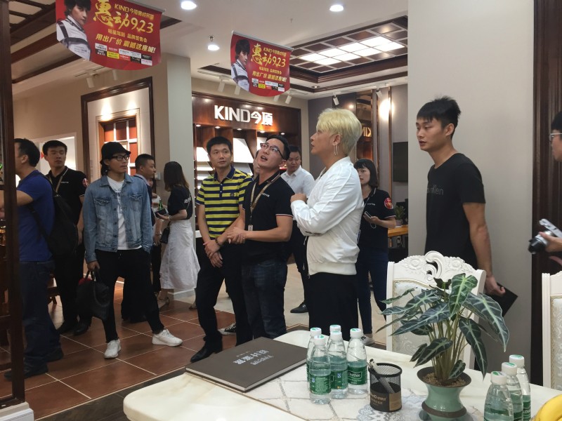 下午2點,本次活動的特邀嘉賓陳志朋終于在萬眾期待下空降武漢主場!作為“特派宣傳視察員”,志朋先是在今頂工作人員的陪同下參觀了今頂展廳。面對布置精美,款式獨特的各種展覽產(chǎn)品,他表現(xiàn)出了極大的興趣,特地要求今頂工作人員為其做專業(yè)講解,了解之后更是對今頂高品質(zhì)的產(chǎn)品與服務(wù)表示高度的欣賞與認可。