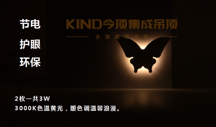 2.節(jié)能護眼:一對蝶戀燈僅3W,3000K色溫黃光,節(jié)電環(huán)保又護眼;