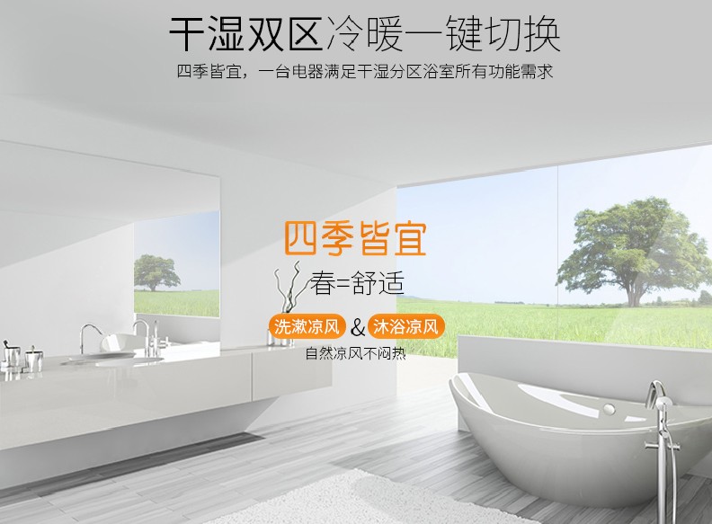 暖尊7主打跨區(qū)域取暖,一鍵切換干濕區(qū)取暖,可滿足干濕分區(qū)浴室所有電氣、冷暖、凈化等需求,功能齊全,四季皆宜。