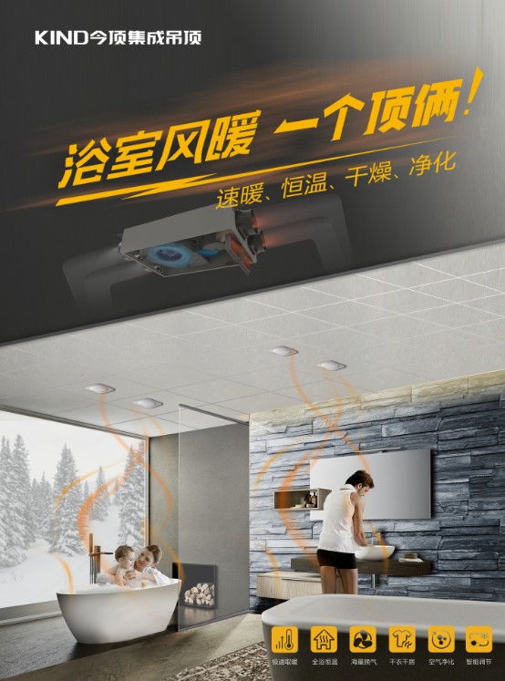 今頂浴室風(fēng)暖集暖房、換氣、干燥、凈化等多功能于一體,冬天快速暖房、夏季涼風(fēng)送爽,梅雨季干燥守護(hù),24小時(shí)換氣潔凈,15cm超薄箱體,嵌入式隱藏安裝,集成吊頂外,石膏、PVC等皆可通用……可謂內(nèi)外兼修,一個(gè)頂倆!