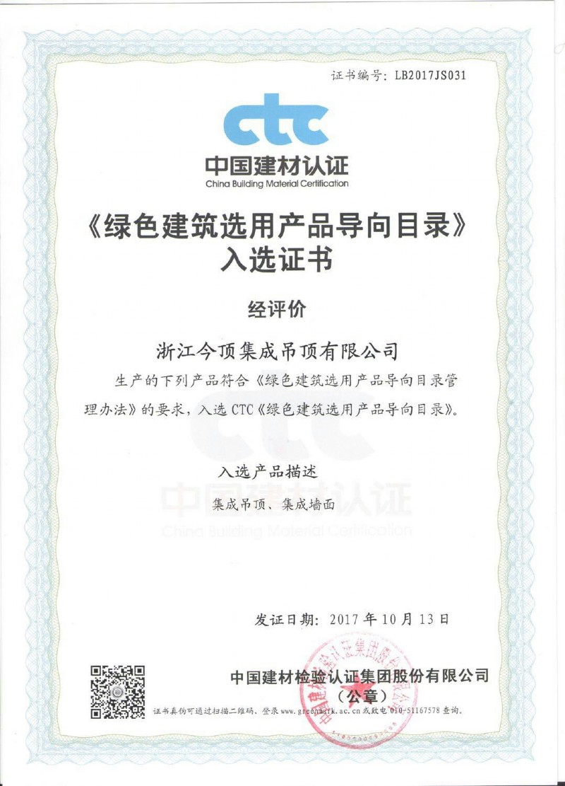 除此之外,今頂近期還獲得了由中國(guó)集成吊頂網(wǎng)頒發(fā)的“2017消費(fèi)者喜愛的集成吊頂十大品牌”榮譽(yù),更入選了【綠色建筑選用產(chǎn)品導(dǎo)向目錄】及準(zhǔn)許使用【綠色建筑選用產(chǎn)品證明商標(biāo)】,這接連不斷的“獎(jiǎng)項(xiàng)豐收季”,無疑是對(duì)今頂最好的肯定,也是最好的鞭策!