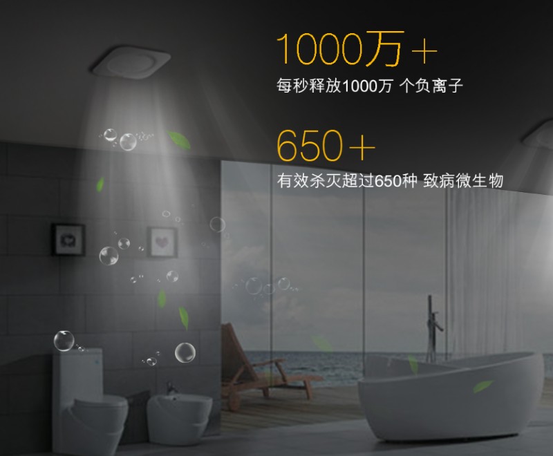 2、空氣凈化:浴室風(fēng)暖新一代的物理式負(fù)離子凈化技術(shù),配有長(zhǎng)效負(fù)離子釋放器,持續(xù)抑制衛(wèi)生間異味,補(bǔ)充空氣“維生素”。