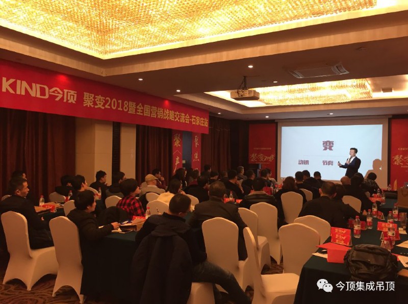 2018年1月22日—23日,今頂在石家莊京州國際酒店勝利進行了第一場“聚·變2018”全國營銷戰(zhàn)略交流會,今頂?shù)臓I銷精英們匯集一堂,總結(jié)2017年的市場營銷工作,分析建材家居市場變化及集成吊頂行業(yè)市場形勢,規(guī)劃并部署來年的工作。