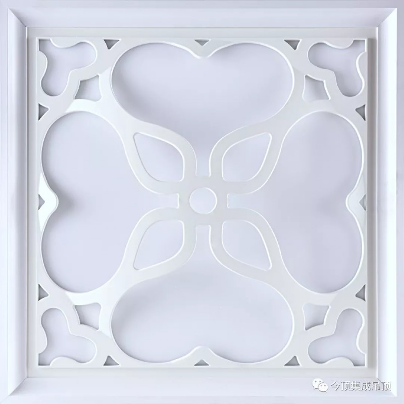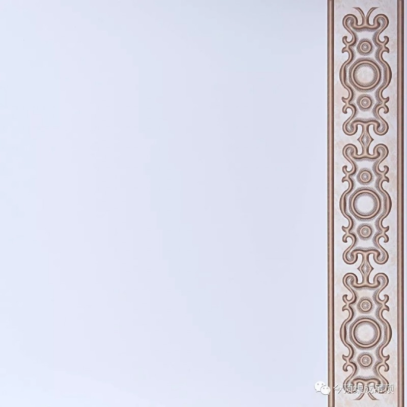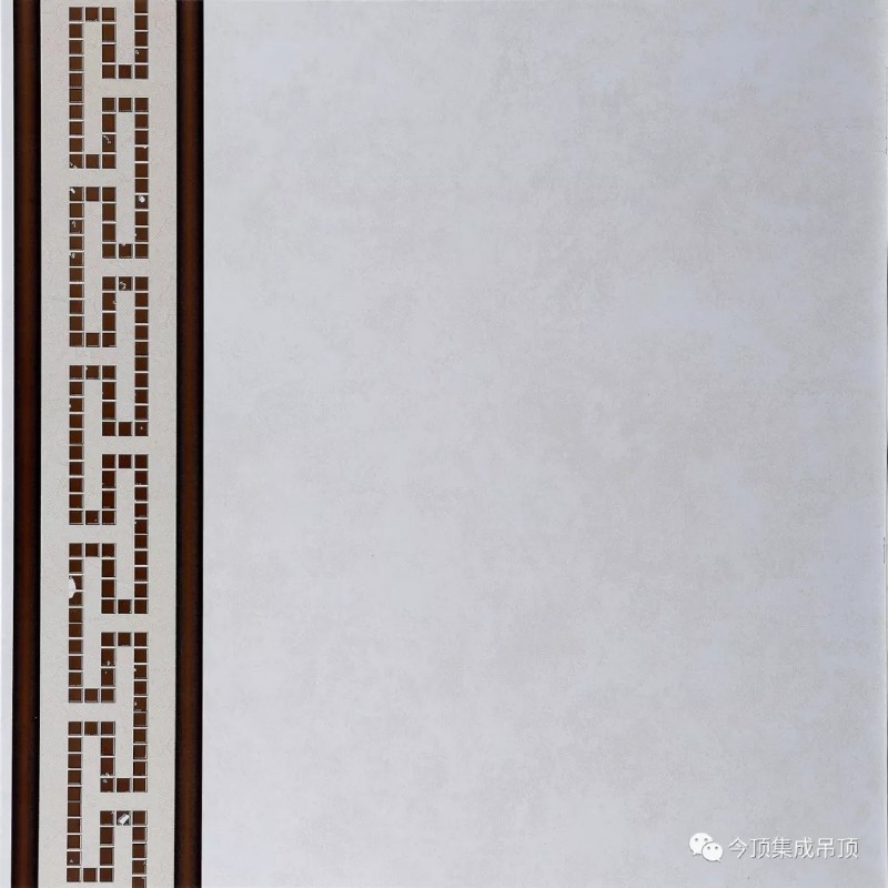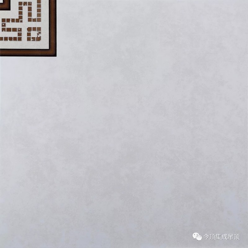 485*485mm規(guī)格,迎合全屋吊頂趨勢,打造出開闊的視覺空間感。深度著色絲印工藝與立體凹凸壓紋技術,令每一塊扣板呈現(xiàn)出別致的鐫刻效果,讓頂面色彩層次分明。