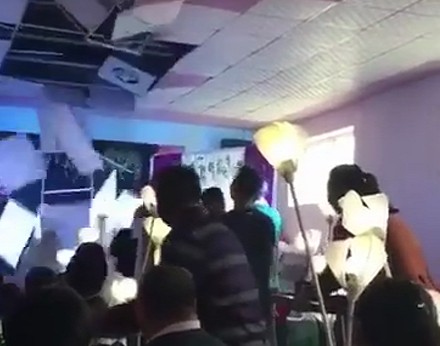近日,朋友圈流傳著這樣一個(gè)視頻:一對(duì)新人在扔捧花之際,由于扔的幅度較大,捧花觸碰到天花板,致使大片吊頂墜落,現(xiàn)場(chǎng)一片狼藉——
