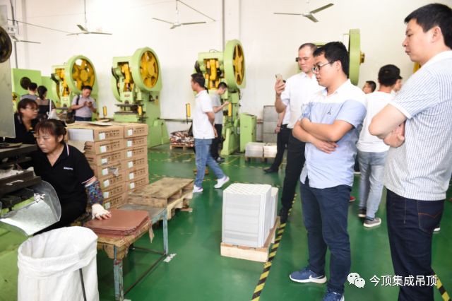 6月7日下午,在今頂集成吊頂董事長(zhǎng)周建成、副總經(jīng)理華偉的帶領(lǐng)下,天花吊頂材料分會(huì)組織會(huì)員蒞臨今頂進(jìn)行了參觀考察。