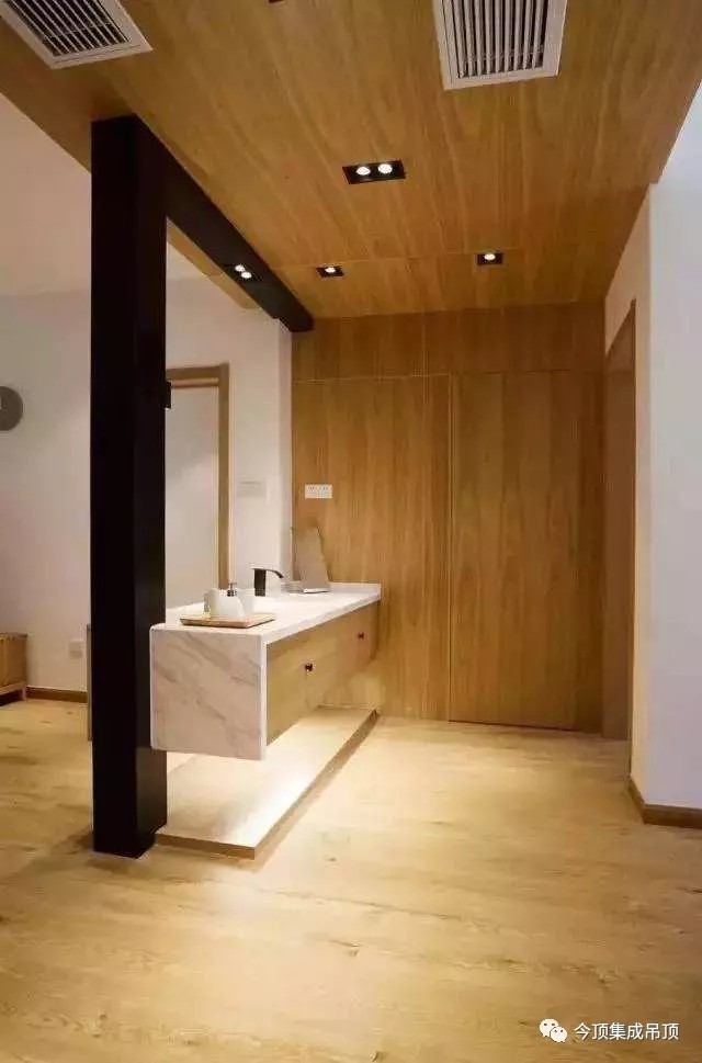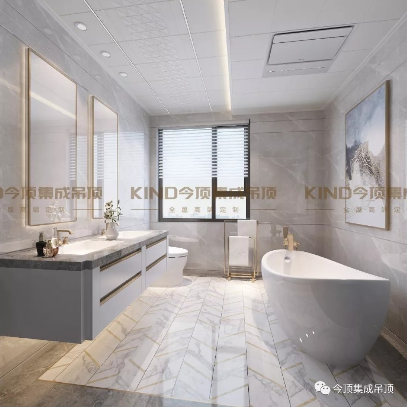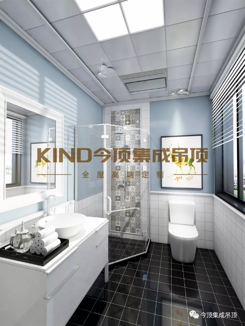 集成吊頂是HUV金屬方板與電器的組合。分扣板模塊、取暖模塊、照明模塊、換氣模塊。具有安裝簡單,布置靈活,維修方便,成為衛(wèi)生間、廚房吊頂?shù)闹髁鳌?/span>