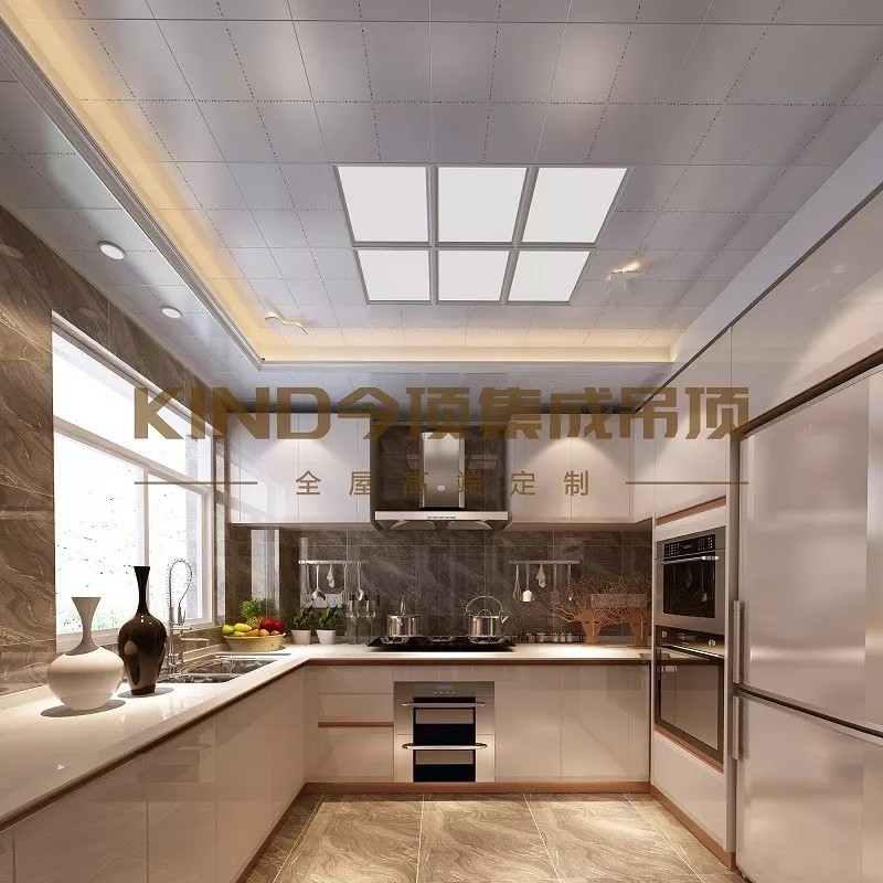 廚房的吊頂也是一個(gè)大問題,一般廚房油煙比較大,建議還是使用鋁板扣板材質(zhì)的吊頂,這樣比較好打理,乳膠漆之類的吊頂還是不要考慮了!現(xiàn)在,集成吊頂已成為衛(wèi)生間、廚房吊頂?shù)慕^對(duì)主流,甚至是全屋的主流。