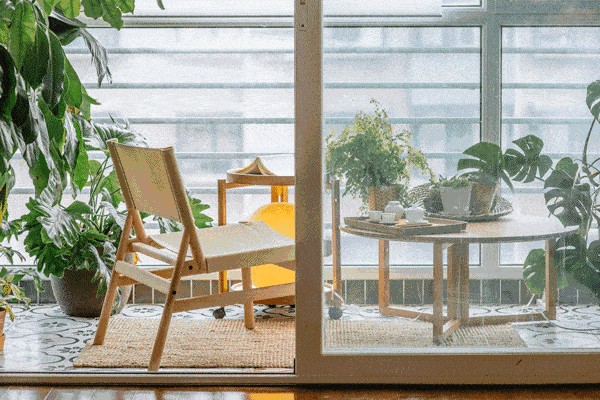 如果陽臺空間狹長,根據(jù)格局來設(shè)計卡座方向,并肩齊坐,可以讓關(guān)系更親密~