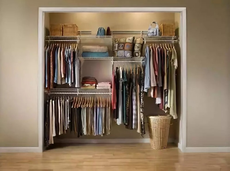 開放式衣帽間適合在一個(gè)大空間內(nèi)解決所有功能,利用一面空墻存放,不完全封閉。